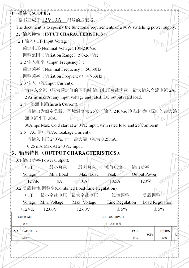 當(dāng)前位置: 電源適配器廠家 > 技術(shù)資料 > 電源規(guī)格書(shū)