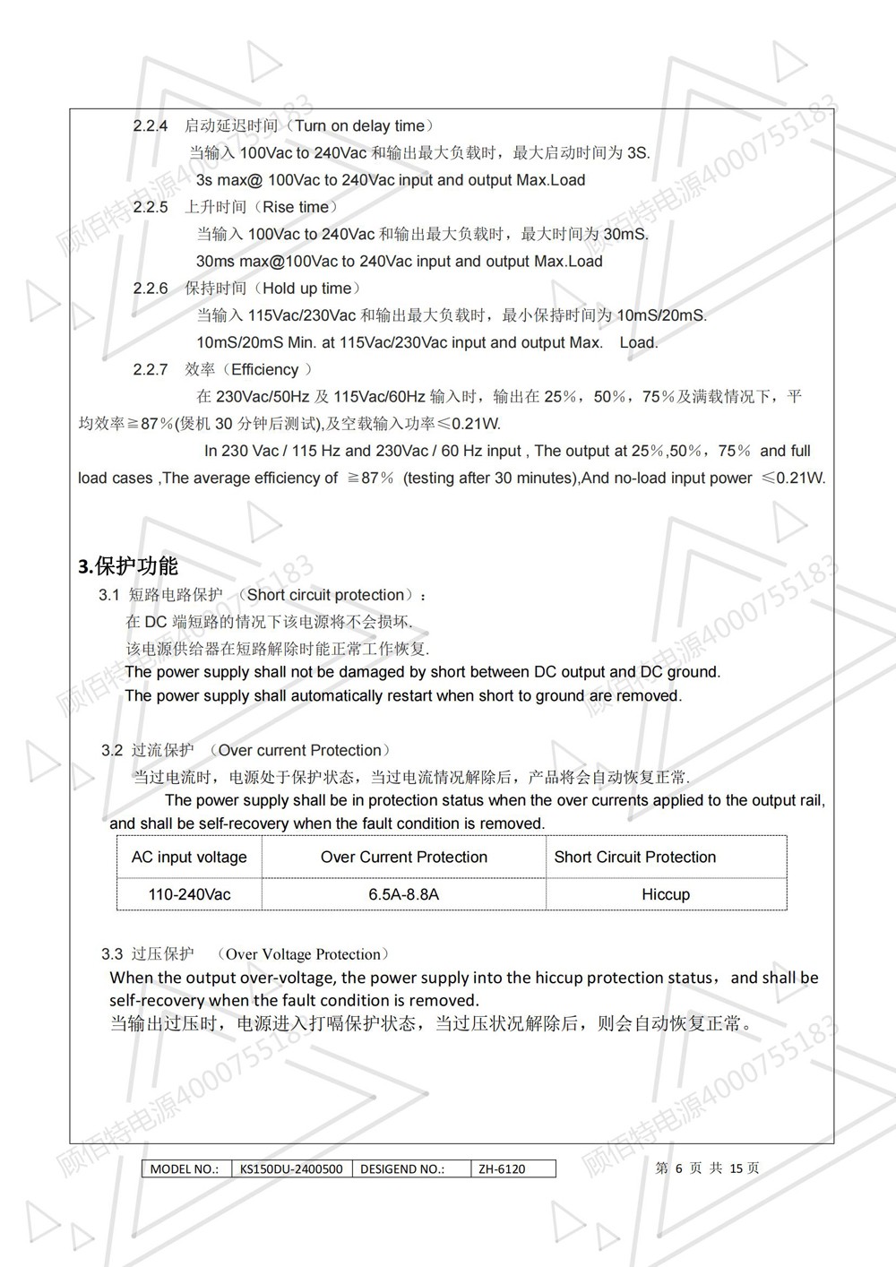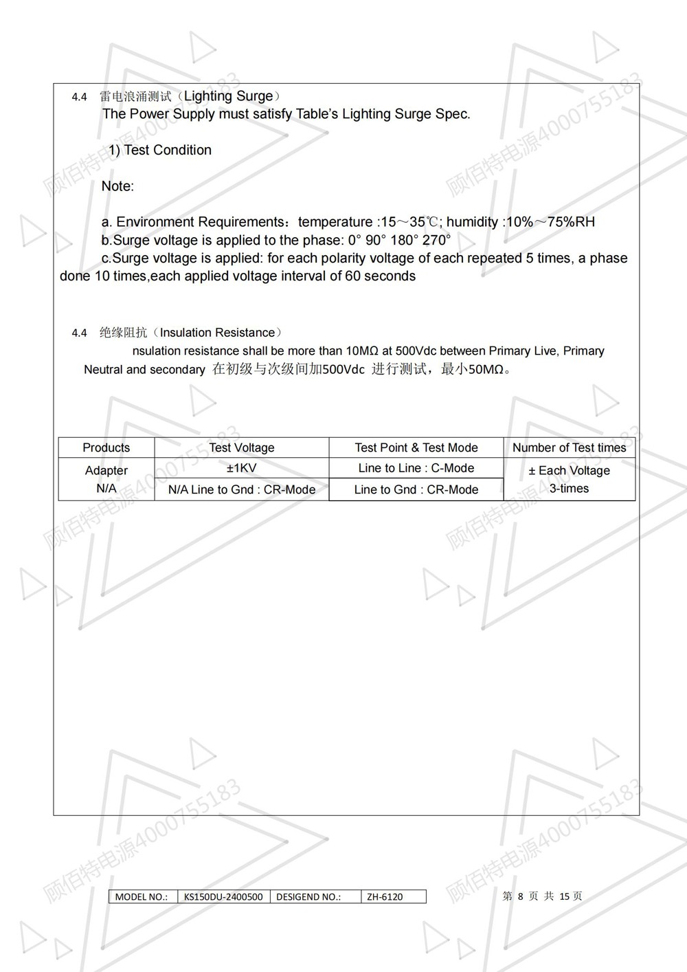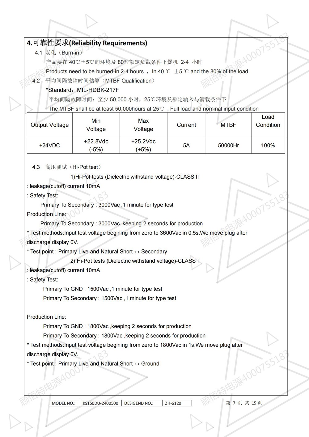 24V5A電源適配器規(guī)格書資料詳細(xì)描述了一款120W(連續(xù)輸出功率)開關(guān)電源的電氣性,結(jié)構(gòu)性及環(huán)境等要求。