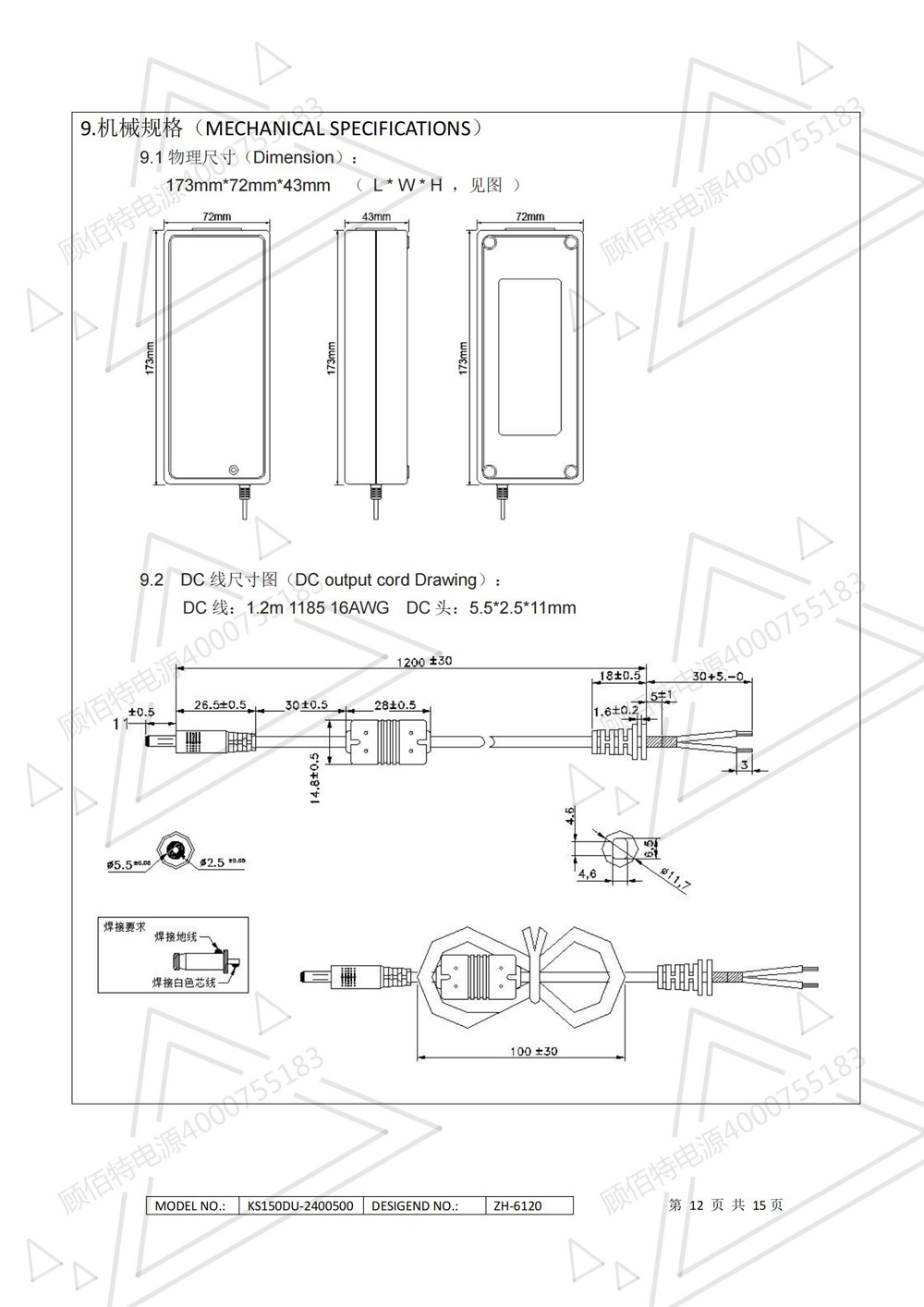24V5A電源適配器規(guī)格書(新模具)