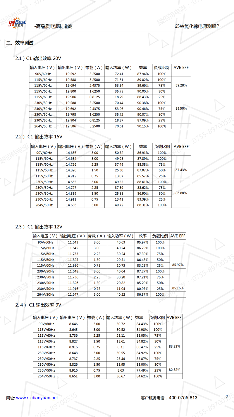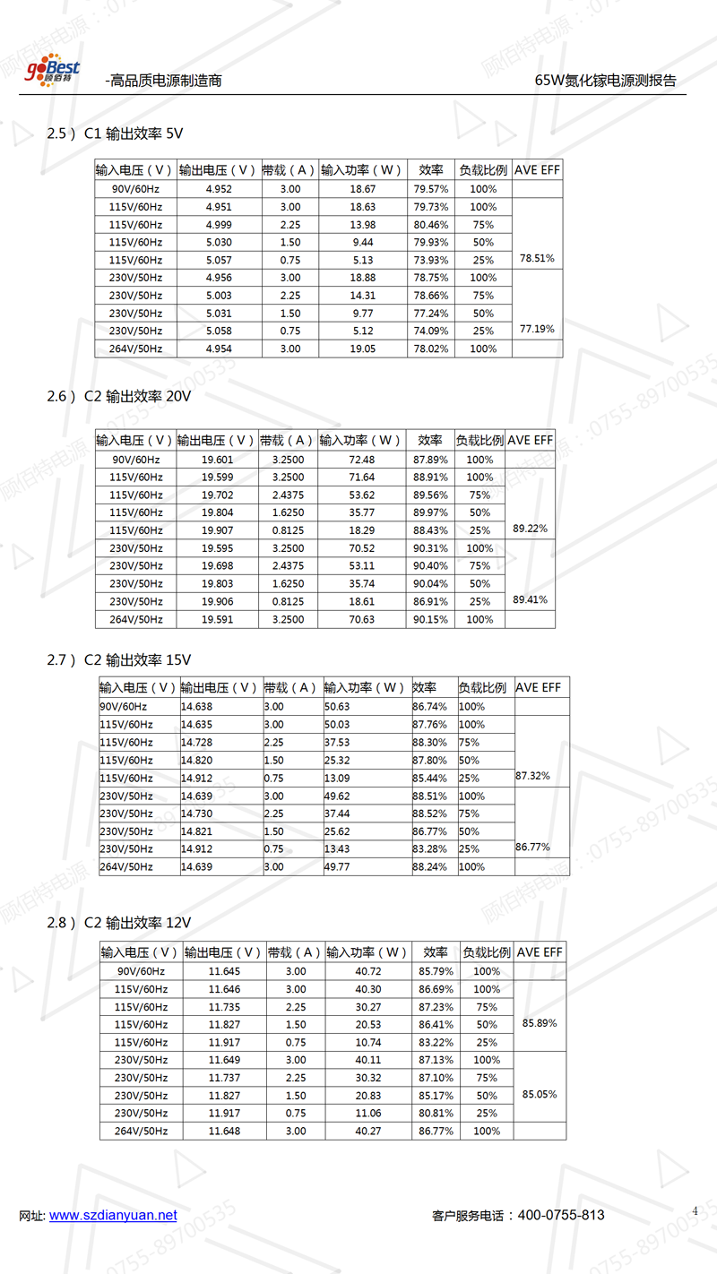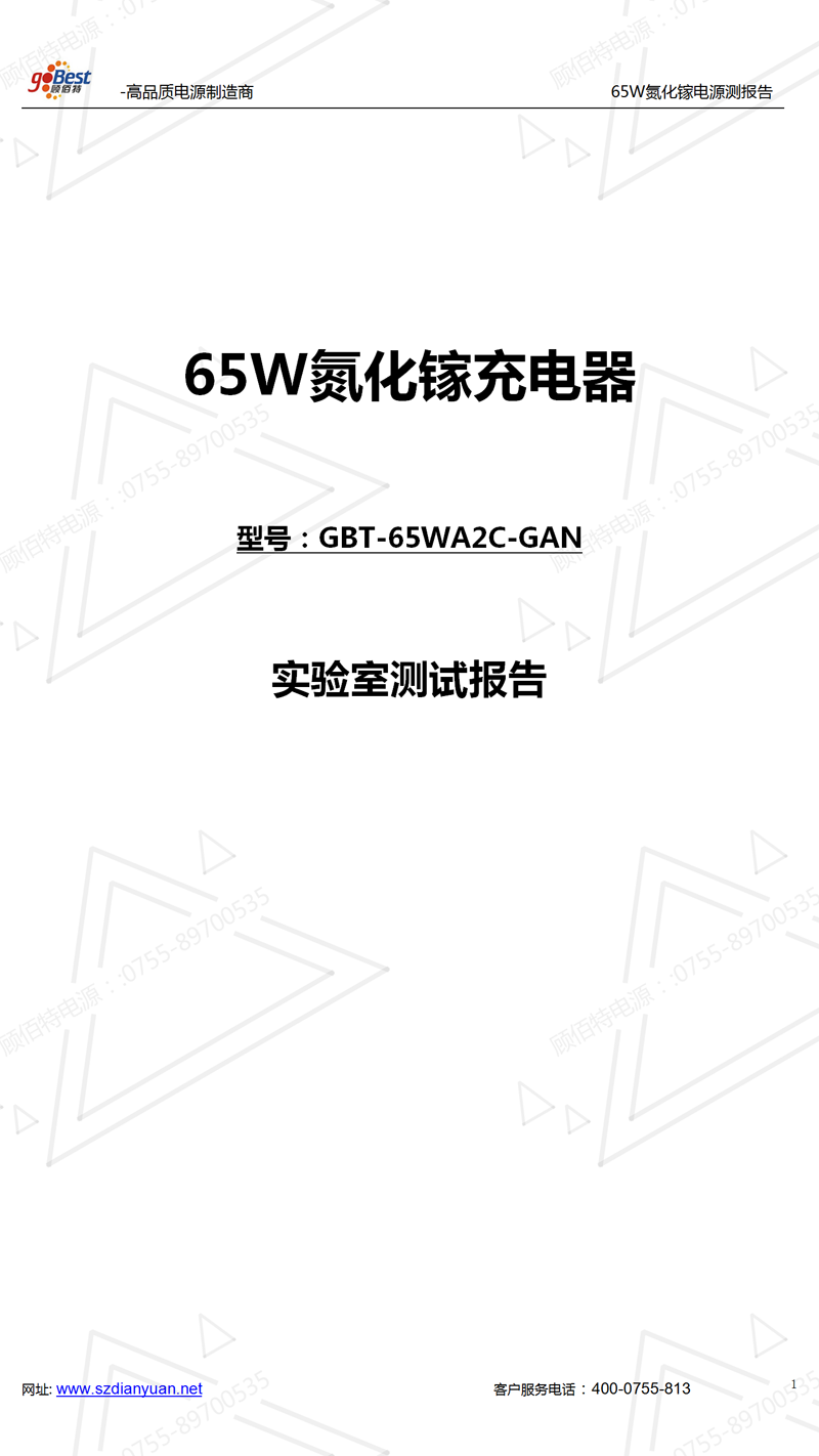 65W氮化鎵充電器實驗室主要性能測試報告